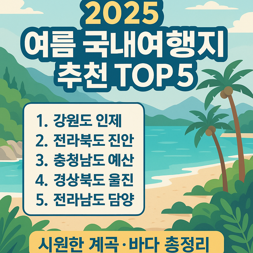 본격적인 무더위가 시작되면 시원하게 즐길 수 있는 국내 피서지를 찾는 분들이 많습니다. 멀리 해외까지 가지 않아도 힐링과 시원함을 동시에 즐길 수 있는 명소들이 우리나라에도 가득하죠. 이번 글에서는 2025년 여름, 가성비와 만족도를 동시에 잡을 수 있는 국내여행지 TOP5를 소개합니다.