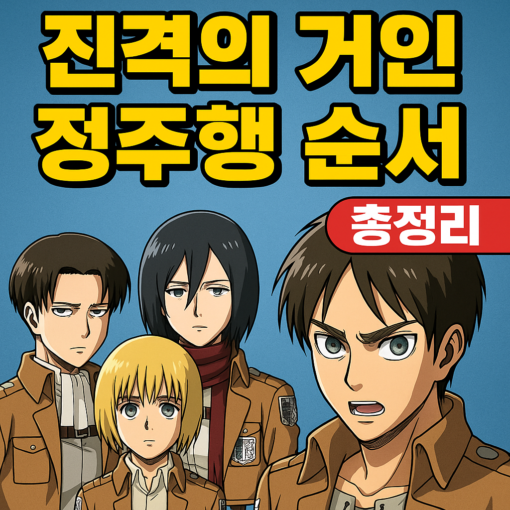 진격의 거인은 시즌이 많고 구조가 복잡해서 입문자에게는 어려울 수 있습니다. 하지만 정주행 순서만 잘 따라가면, 세기의 명작이라는 찬사를 직접 체감할 수 있어요. 이 글을 참고해서 몰입도 높은 시청 경험 하시길 바랍니다!