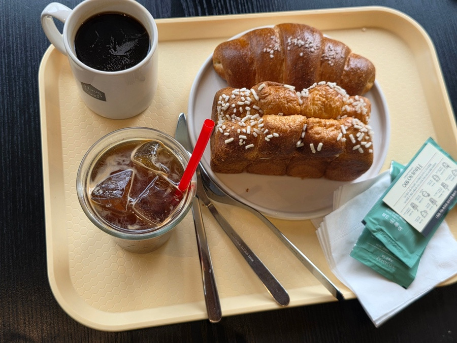 함께 주문한 아메리카노는 산미가 적고 깔끔해서 빵과 찰떡궁합이었어요.