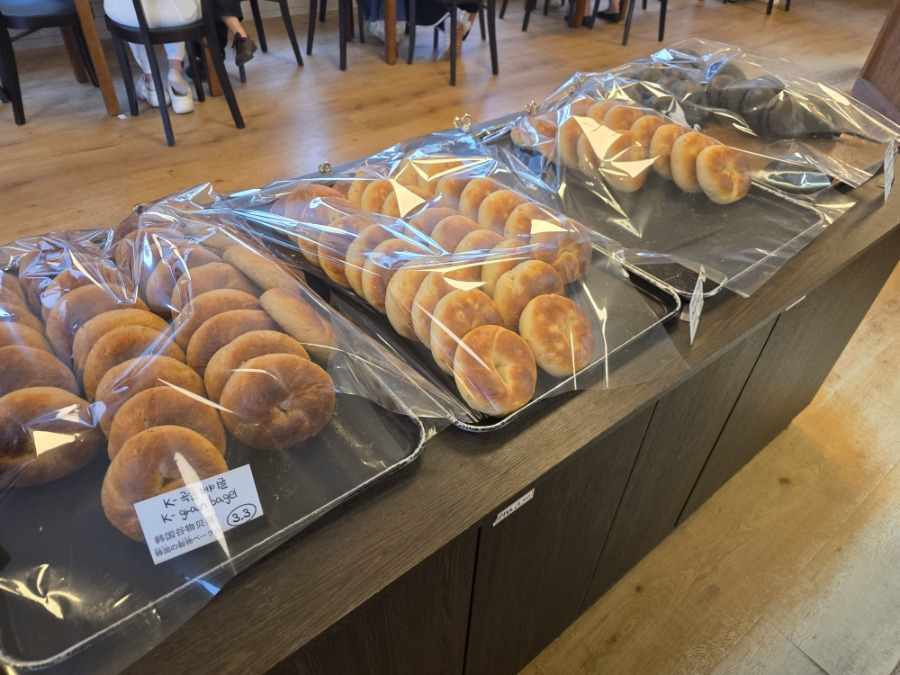 저희는 오후 4시쯤 방문했는데, 소금베이글이나 앙버터베이글 등 인기 메뉴는 이미 품절 상태였어요. 베이글 종류가 정말 다양해서 욕심나더라고요. 다음엔 꼭 오픈 시간대에 방문해야겠다고 다짐했어요.