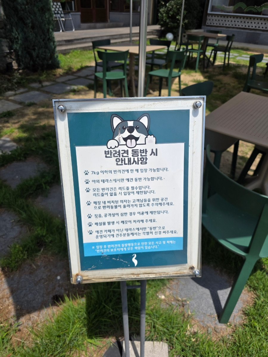 가장 중요했던 포인트! 실내는 반려견 출입 불가지만 야외 좌석에서는 반려견 동반 가능합니다.