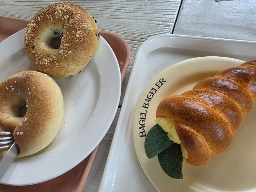 - 음식: 다양한 베이글과 깔끔한 커피, 크림치즈 조합 최고