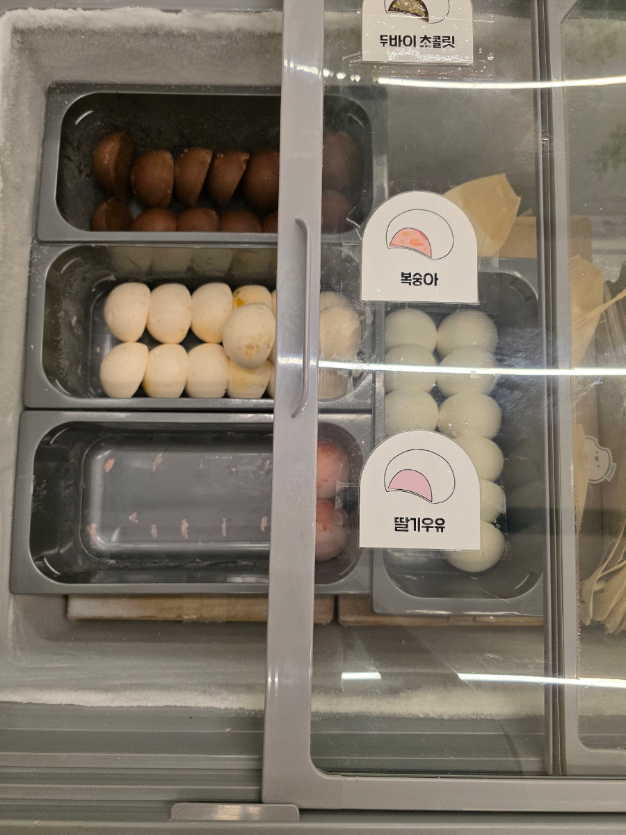 주문 즉시 눈앞에서 찹쌀떡 반죽을 손으로 치대고, 부드러운 젤라또와 속재료를 정성스럽게 넣어 만드시는 모습이 인상 깊었어요.