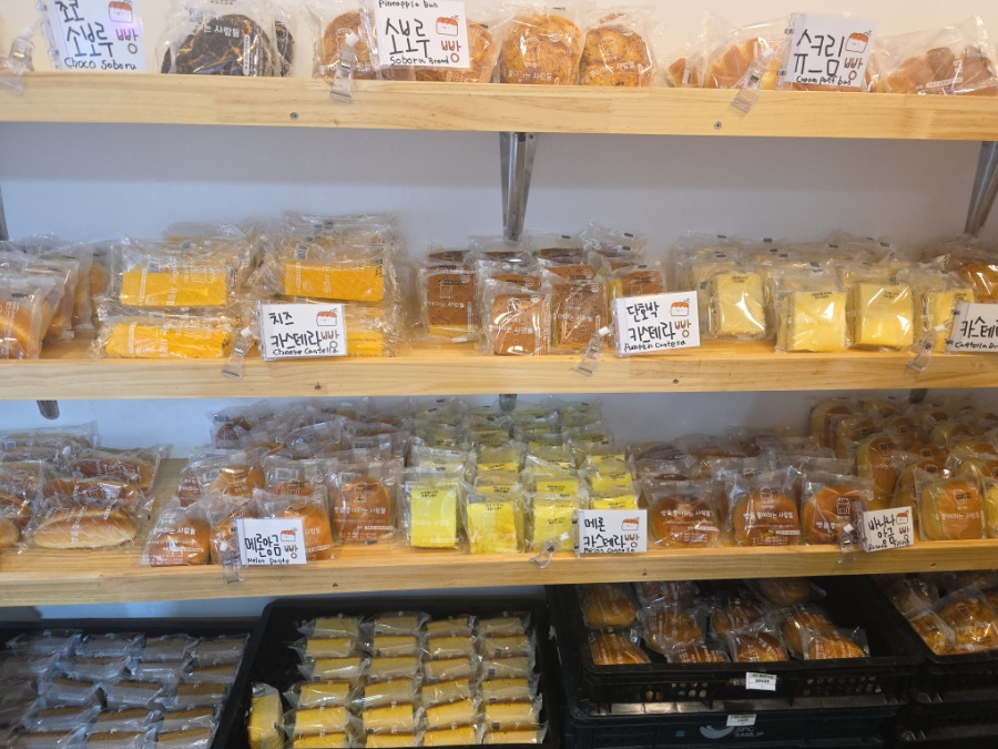 이곳에서는 무려 34종의 빵을 대부분 1,000원에 판매하고 있어요. 롤케익, 식빵 등 일부 제품은 1,000원이 아니지만, 가격표가 명확하게 붙어 있어서 헷갈릴 걱정이 없어요.