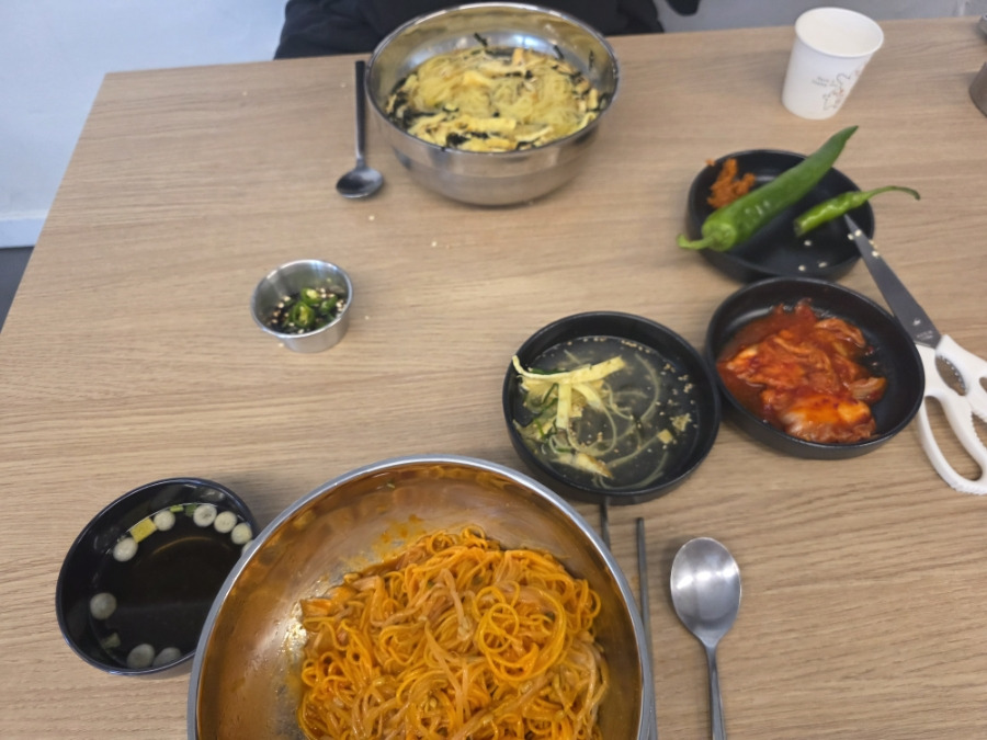 - 비빔국수 : 매콤달콤한 양념이 면발에 착! 올라간 수육 고명까지 더해져 푸짐했어요.