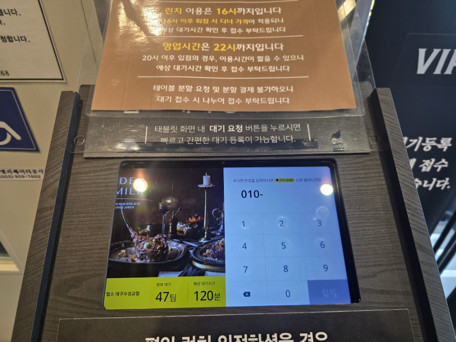 대기는 나우웨이팅 시스템을 통해 실시간으로 내 번호와 예상 시간을 확인할 수 있어 편리했습니다.