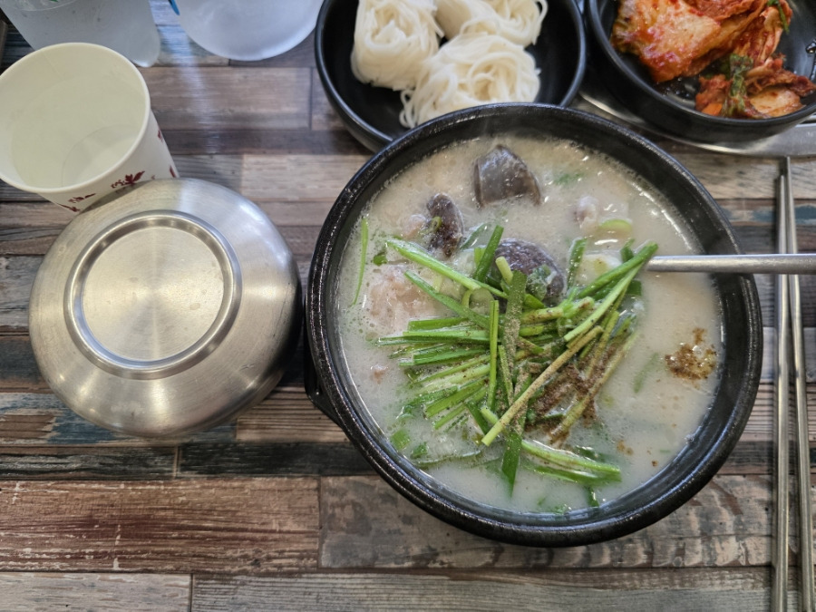 국물은 뽀얗고 진하며, 건더기도 푸짐하게 들어 있어 만족스러웠습니다.