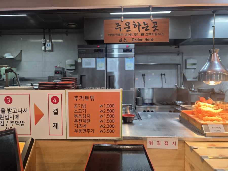 매장 자체가 넓고 자리 간격도 여유 있어서 전체적으로 쾌적해요. 역 안에 있는 식당답게 회전도 빠르고 혼밥하기 정말 좋은 구조예요.