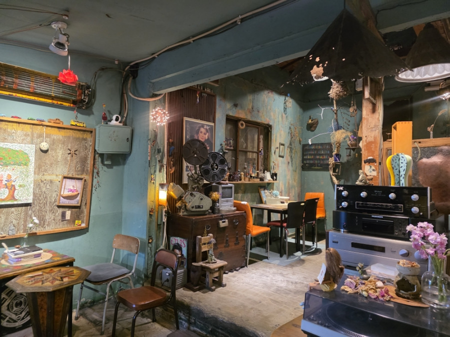 가구 하나하나도 전부 빈티지라 그냥 앉아만 있어도 감성이 자연스럽게 차오르는 느낌이랄까요. 책, 음악, 오래된 공방의 무드가 섞인 공간이라 혼자 와서 생각 정리하기에도 정말 좋아 보여요.