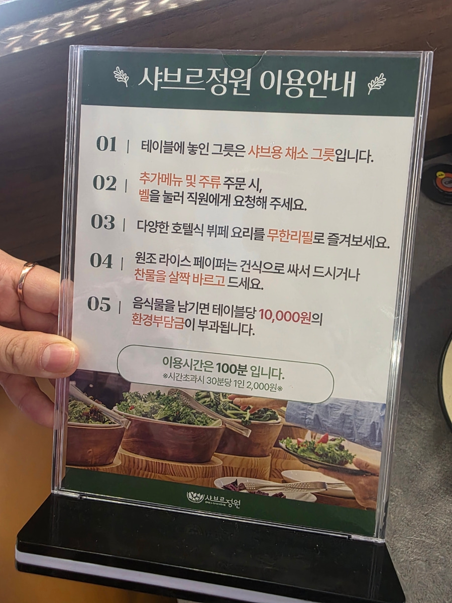 ※ 음식 남길 경우 테이블당 환경부담금 10,000원 발생