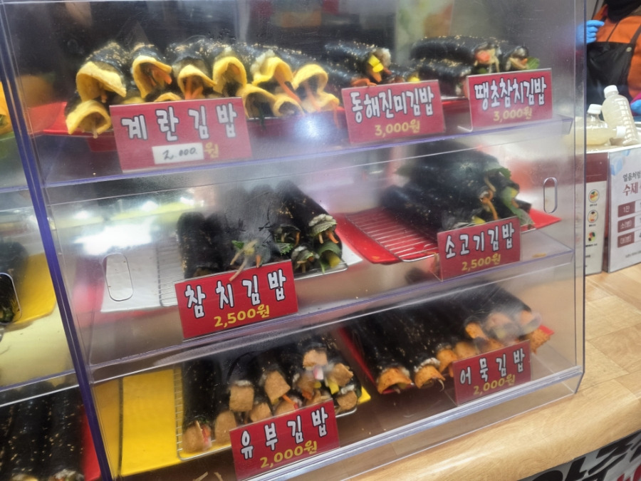 김밥 종류가 정말 다양해서 취향에 맞게 고르는 재미가 있어요. 전체적으로 가격대가 저렴해서 여러 줄 구매해도 부담 없는 편입니다.