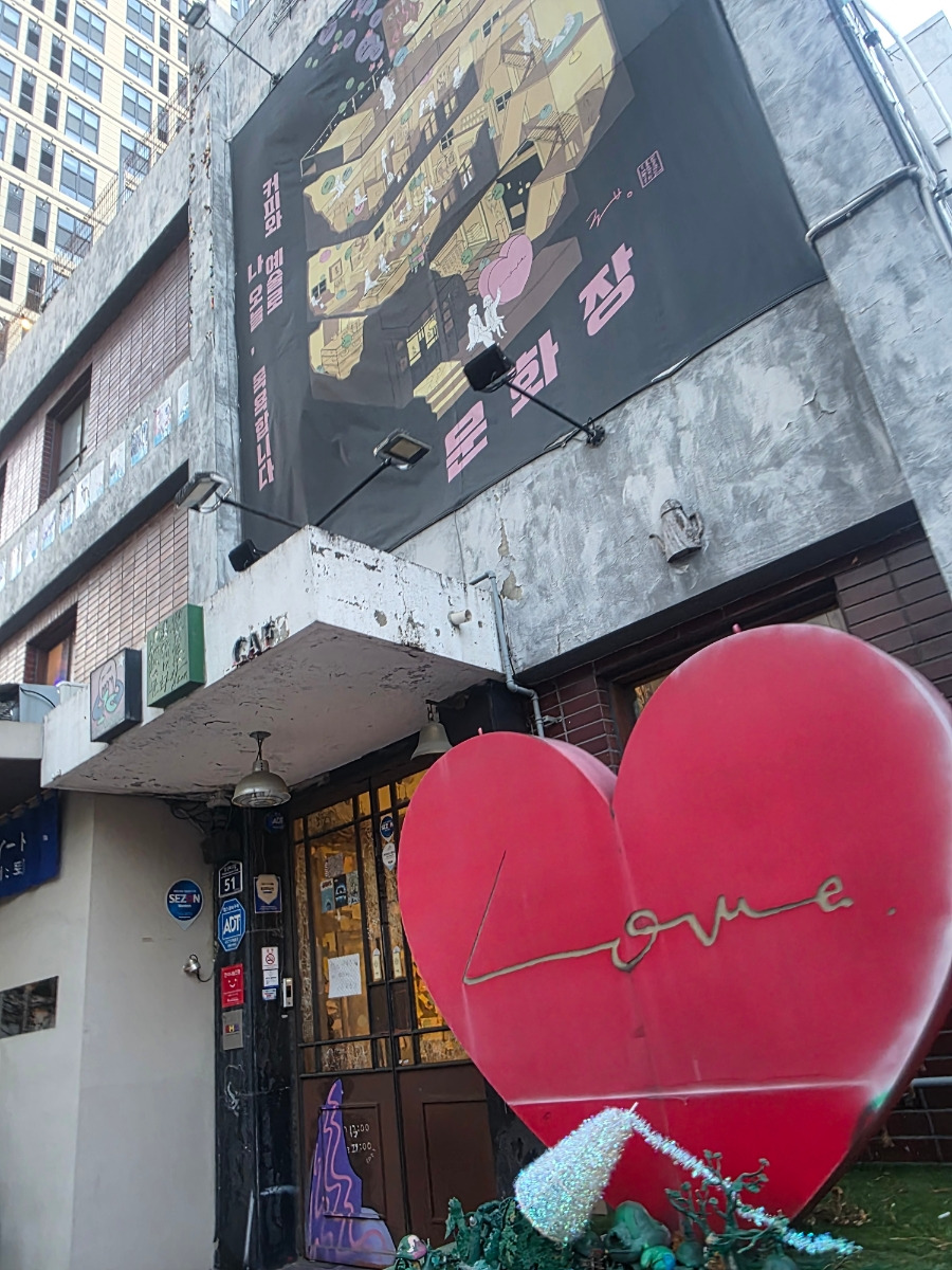 입구의 강렬한 벽화와 오브제부터 시선을 사로잡고, 건물 안으로 들어가면 층마다 완전히 다른 콘셉트가 펼쳐져 마치 전시관을 탐험하는 느낌이 들었어요. 단순한 카페라기보다 전시 공간과 문화 플랫폼이 결합된 장소에 가까웠습니다.