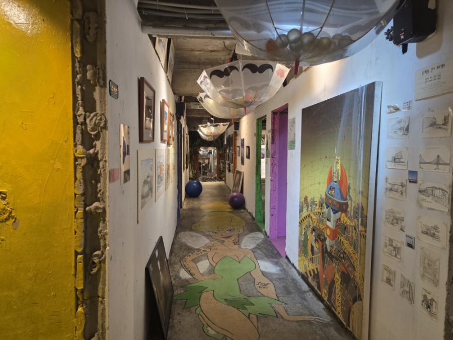 - 복도 바닥과 벽면까지 작품으로 채워진 구조