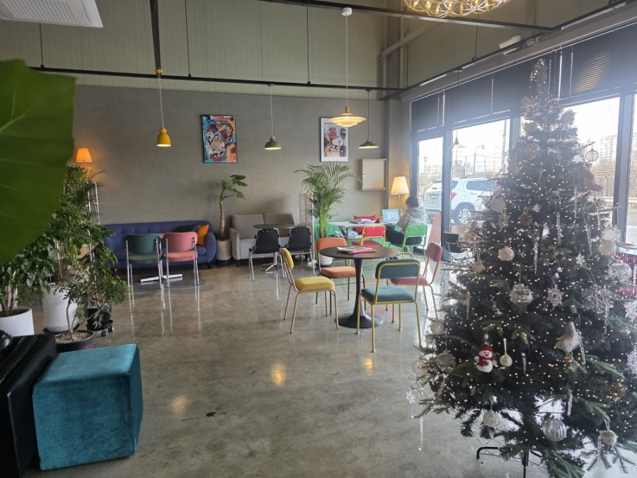 문을 열고 들어가면 가장 먼저 느껴지는 건 넓은 공간감. 천장이 높고 통유리 구조라 채광이 좋아서 답답함이 전혀 없어요.
