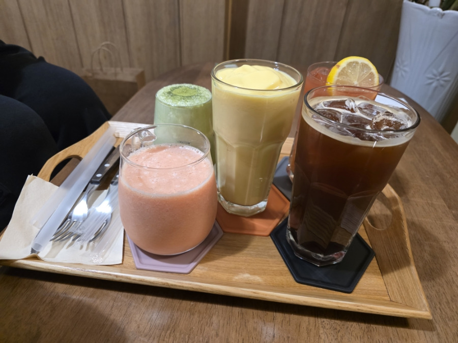 음료가 한 번에 나오는데 비주얼부터 만족스러웠어요.