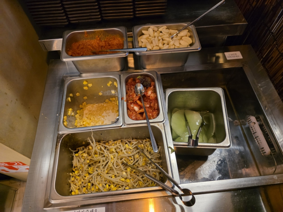 밑반찬은 셀프바에서 자유롭게 가져다 먹는 방식입니다.