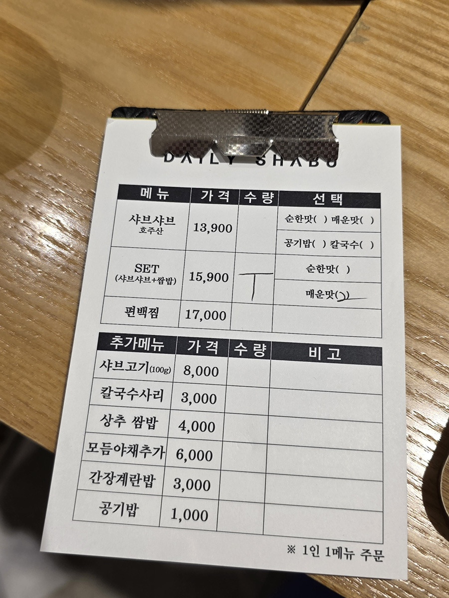 1인 기준으로는 샤브샤브 양이 살짝 아쉬울 수 있으며, 일반적인 샤브샤브집처럼 죽으로 마무리하는 메뉴가 없는 점은 아쉽습니다.