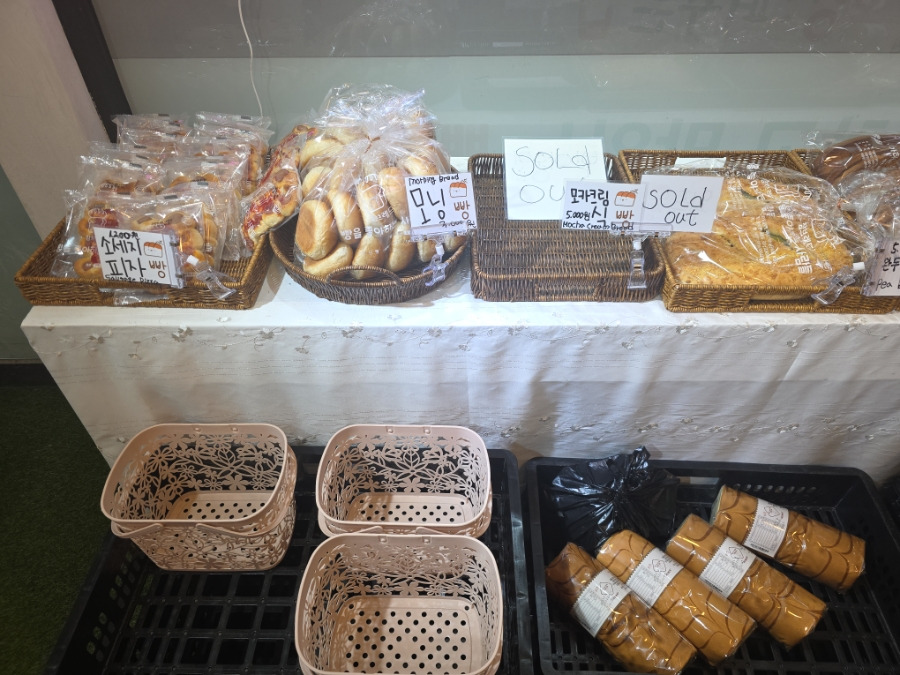 이곳에서는 무려 34종의 빵을 대부분 1,000원에 판매하고 있어요. 롤케익, 식빵 등 일부 제품은 1,000원이 아니지만, 가격표가 명확하게 붙어 있어서 헷갈릴 걱정이 없어요.