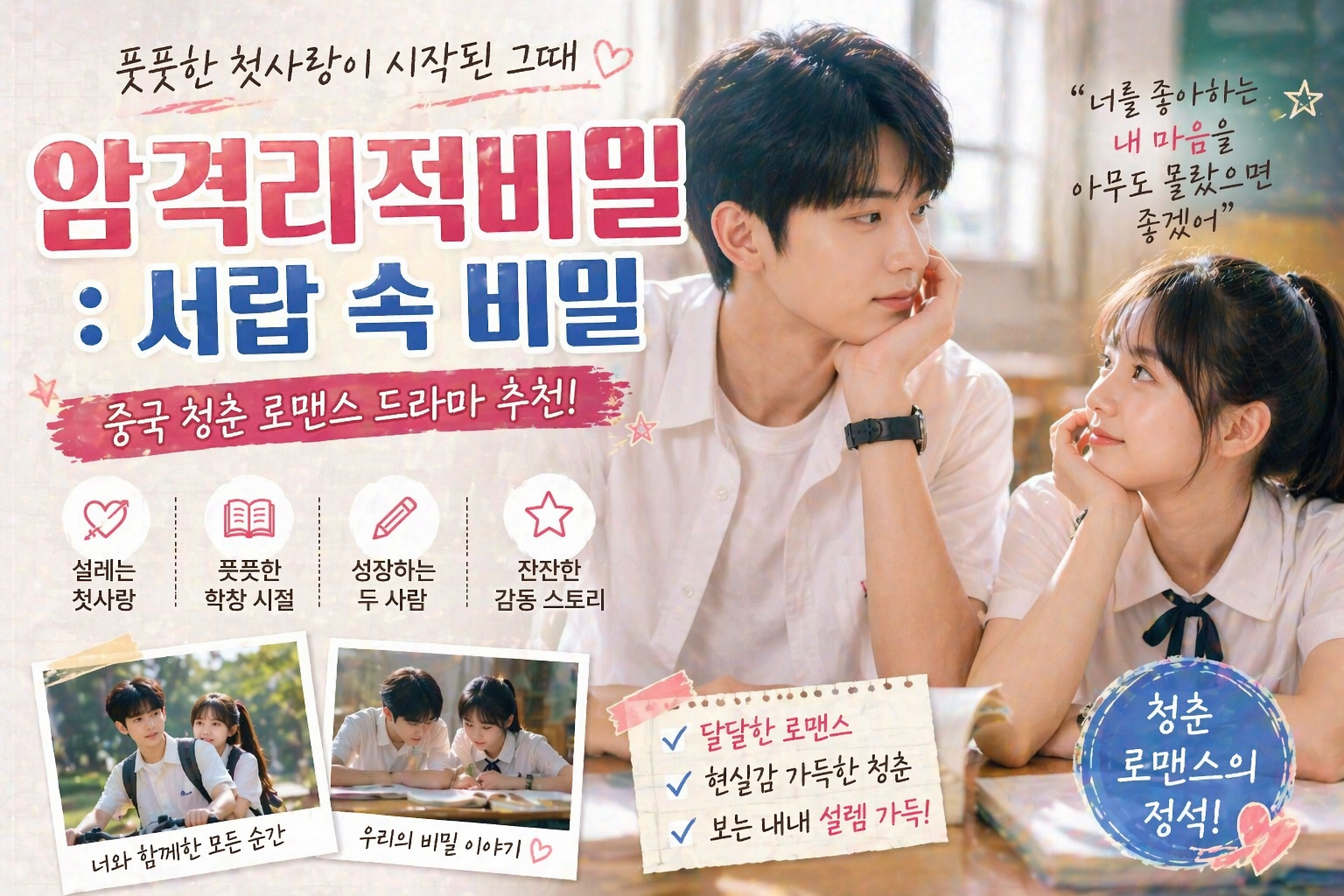 요즘 중드 입문작 찾는 분들 사이에서 꾸준히 추천되는 작품 암격리적비밀(서랍 속 비밀) 👀 자극적인 전개 없이 잔잔하게 스며드는 청춘 로맨스라 가볍게 보기 좋은 드라마로 많이 알려져 있어요.